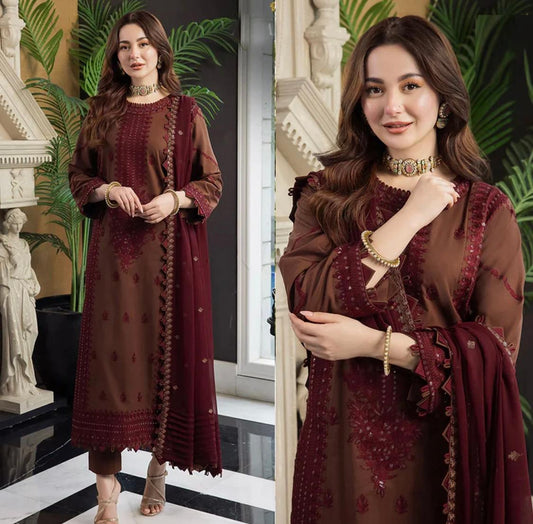 Dhanak 3PC Embroidered Shirt with Dhanak Embroidered Dupatta-3563