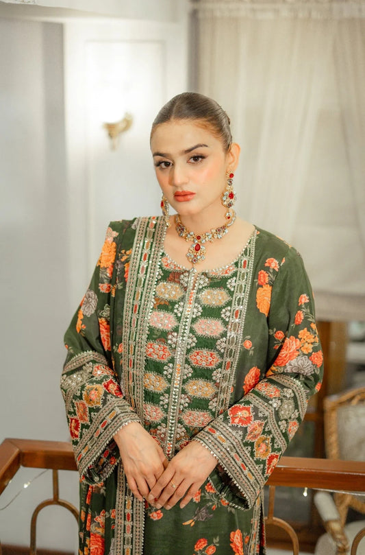 Dhanak-3PC Embroidered Shirt with Digital Printed Wool Shawl -3188
